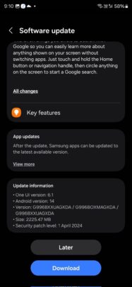 As you can see in the screenshots below, the update doesn't bring the May 2024 security patch to the Galaxy S21. Samsung may release it as a separate update in the next few weeks.