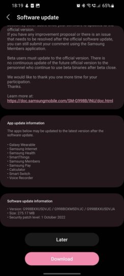 The Galaxy S21, Galaxy S21+, and the Galaxy S21 Ultra are now getting the stable Android 13 (One UI 5.0) update in India, Kazakhstan, and Russia. The new software comes with firmware version G99xBXXU5DVJC and includes the November 2022 security patch. Devices running One UI 4.1.1 are getting a major update with download size of around 2GB. Those who are beta-testing One UI 5.0 on their devices are getting the same update with a download size of around 275MB.