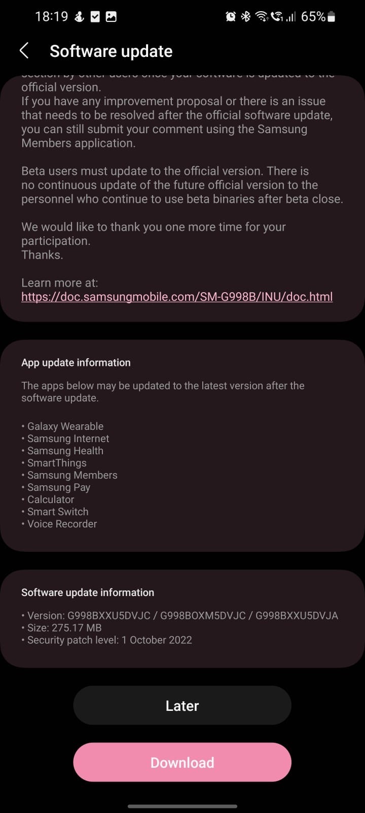 If you are a Galaxy S21 user in any of the countries mentioned above, you can download the Android 13 update by navigating to Settings » Software update and tapping Download and install. You can also download the new firmware file from our firmware database and flash it manually.