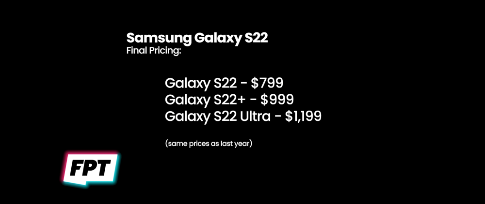 The Galaxy S22, S22+, and S22 Ultra in the United States will have starting prices of $799, $999, and $1,199, respectively, according to a new Front Page Tech report via YouTube.