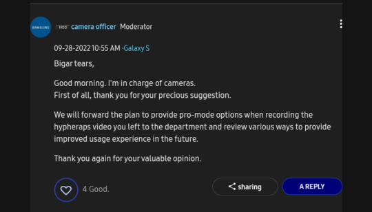 A few Galaxy S22 customers have asked for more control parameters in hyperlapse mode, including ISO, shutter speed, white balance, and focus. A couple of Samsung camera developers have responded and recently confirmed on the official Community forums that they have looked into adding more ways to manipulate and control the image in hyperlapse mode for the Galaxy S22. They appear to have come up with a solution and “are preparing to apply [it].” (via TheGoAndroid)