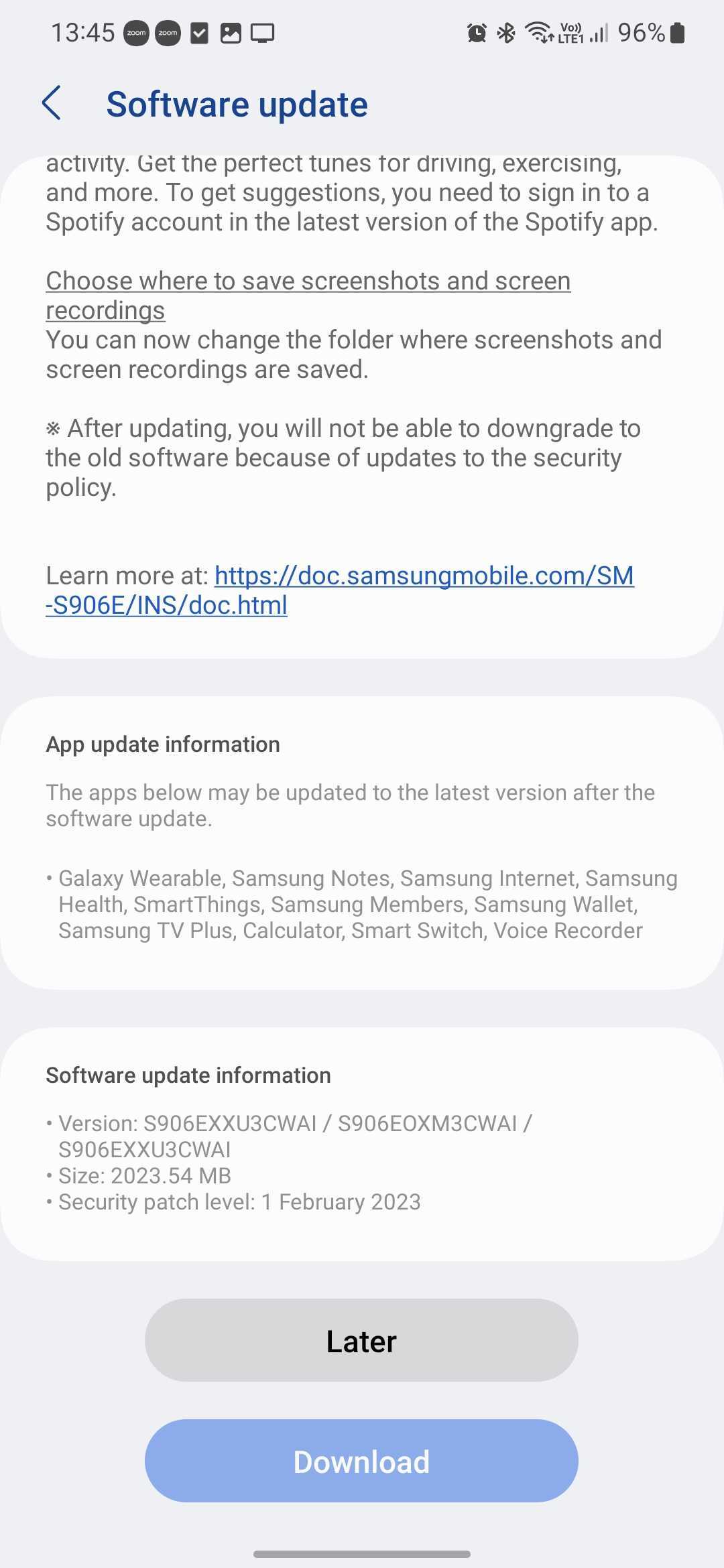 The One UI 5.1 update for the Snapdragon versions of the Galaxy S22, Galaxy S22+, and Galaxy S22 Ultra comes with firmware version S90xEXXU3CWAI. The update is currently rolling out in Australia, India, Nepal, and Sri Lanka. Other countries could get the update within the next few days. The new firmware also brings the February 2023 security patch to the smartphone.
