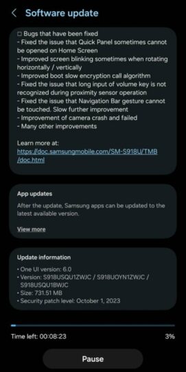 This is the seventh beta update for the Galaxy S23 series and started rolling out in Korea and the USA, with its firmware version ending in ZWJC. The update is available in Germany and the UK as well; it will likely also be released in other markets where Samsung is running the One UI 6.0 beta program.