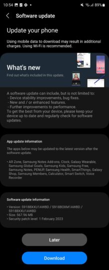 The latest software update for the Galaxy S23, Galaxy S23+, and Galaxy S23 Ultra comes with firmware version S91xBXXU1AWBD. The new update is rolling out in most European countries, and we expect it to reach other countries within the next few days. The unlocked versions of the smartphones will get updated prior to those units that are carrier-locked, especially in the US. The latest update is over 567MB in size, so we advise you to download it using a Wi-Fi network.