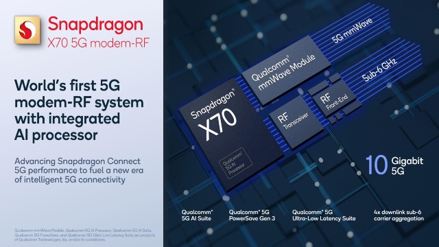 Moreover, Qualcomm says that the Snapdragon X70 5G is the only comprehensive 5G modem-RF system in the world with an AI processor built-in. The AI processor is there to help in the management of superior mobility and coverage and also in adaptive antenna tuning for up to 30% improved context detection.