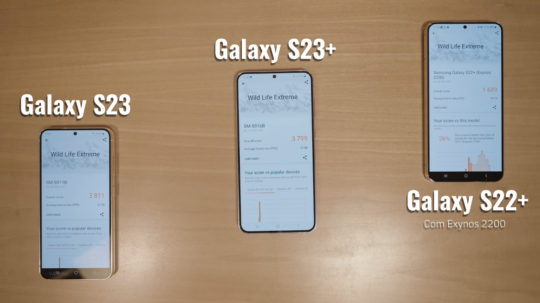 The benchmark used was 3DMark Wild Life Extreme, which is supposed to push GPU capabilities to their limits. The Galaxy S23 and S23+ scored 3,811 and 3,799 points, respectively, with both phones averaging a framerate of 20.80. In contrast, the Galaxy S22+ powered by the Exynos 2200 SoC scored 1,689 points and averaged a framerate of 10.10.