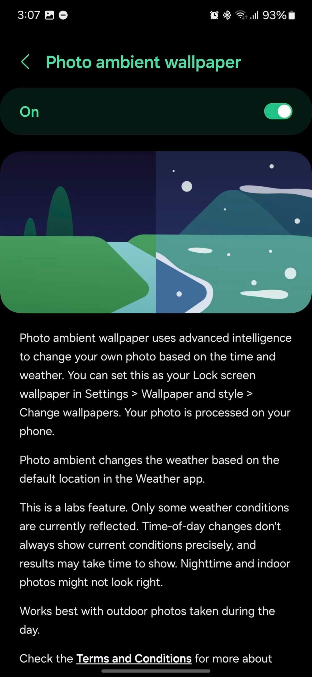 You should note that because this feature is in development, it may feel incomplete in places. For example, only some weather conditions are currently reflected by the Photo Ambient Wallpaper, and the time of day is not always accurately represented.