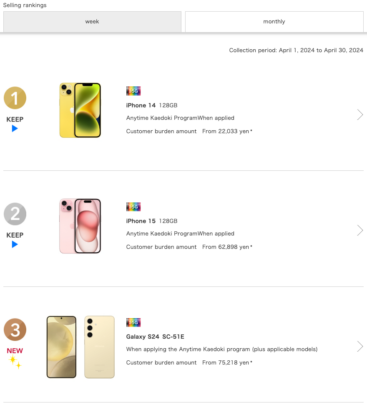 The Galaxy S24 was the third highest-selling smartphone from NTT Docomo in Japan in April 2024. The Galaxy S24 Ultra came in the fifth position. Since the company hasn’t launched the Galaxy S24+ in Japan, it’s not on the network carrier’s list of highest-selling smartphones. In case you are wondering which were the first and the second highest-selling phones there, those were the iPhone 14 and the iPhone 15 respectively.