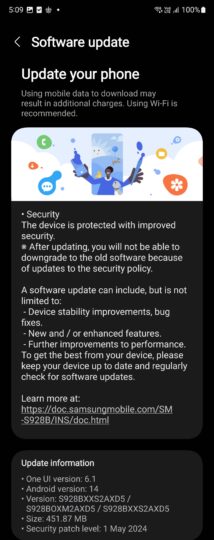 In some markets, like India, the May 2024 security update was initially released only for the base and Plus models. Now, a couple of days later, the update is available for the Galaxy S4 Ultra as well and can be identified by the build number S928BXXS2AXD5.