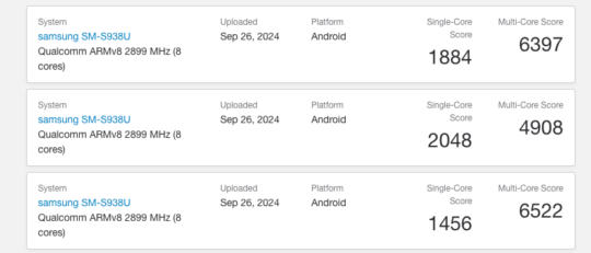 As you might know, the Galaxy S25 Ultra for the USA, i.e., SM-S938U, was first spotted on Geekbench in September. At that time, it scored 3,069 and 9,080 points in single and multi-core tests at its very highest, but there were also some much lower scores, as you'll see below.