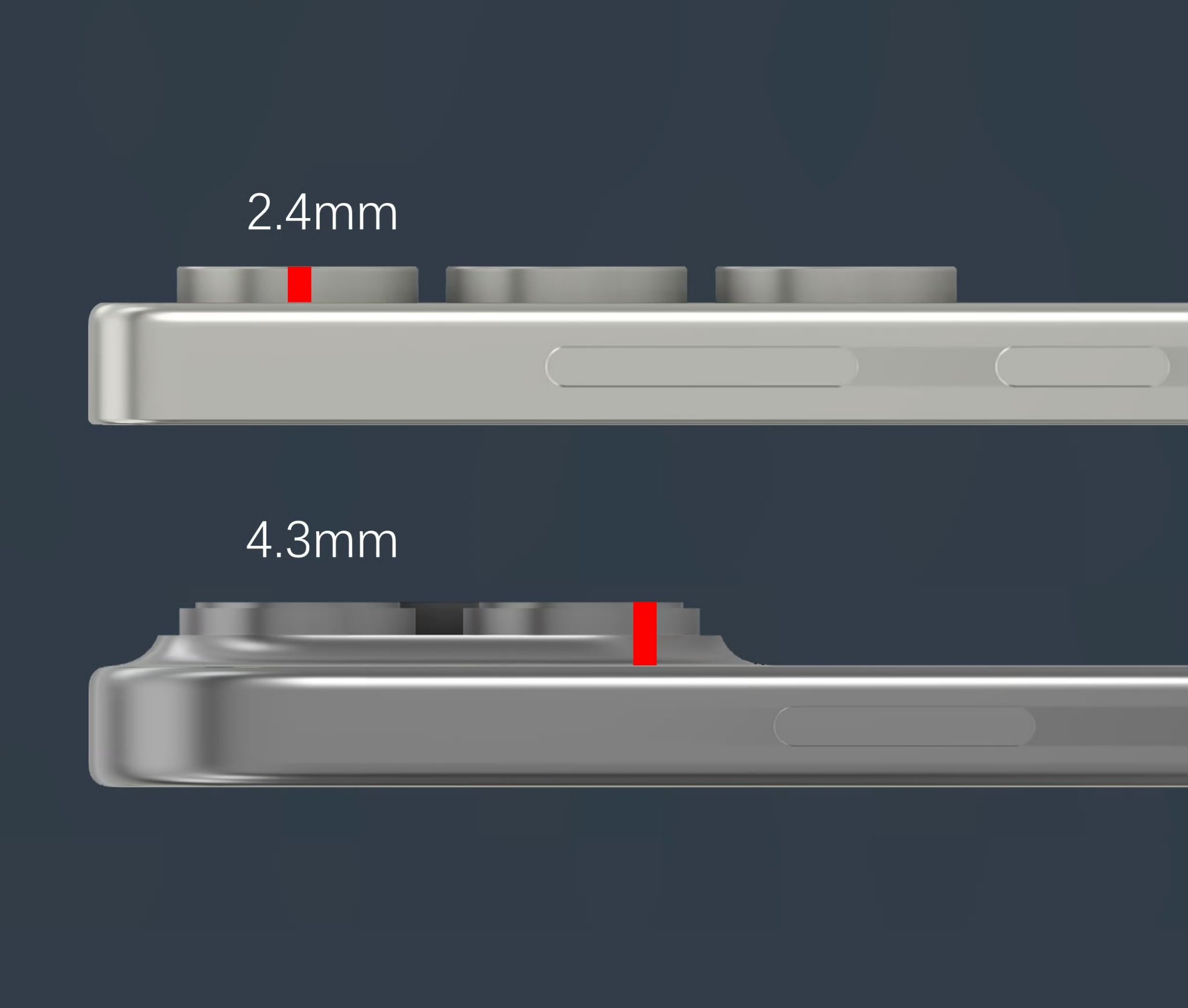 On X, @UniverseIce claims that the thickness of the Galaxy S25 Ultra’s camera rings is 2.4mm. It is way less than the depth of the iPhone 16 Pro Max’s camera hump, which is 4.3mm. You can see the comparison in the image below.