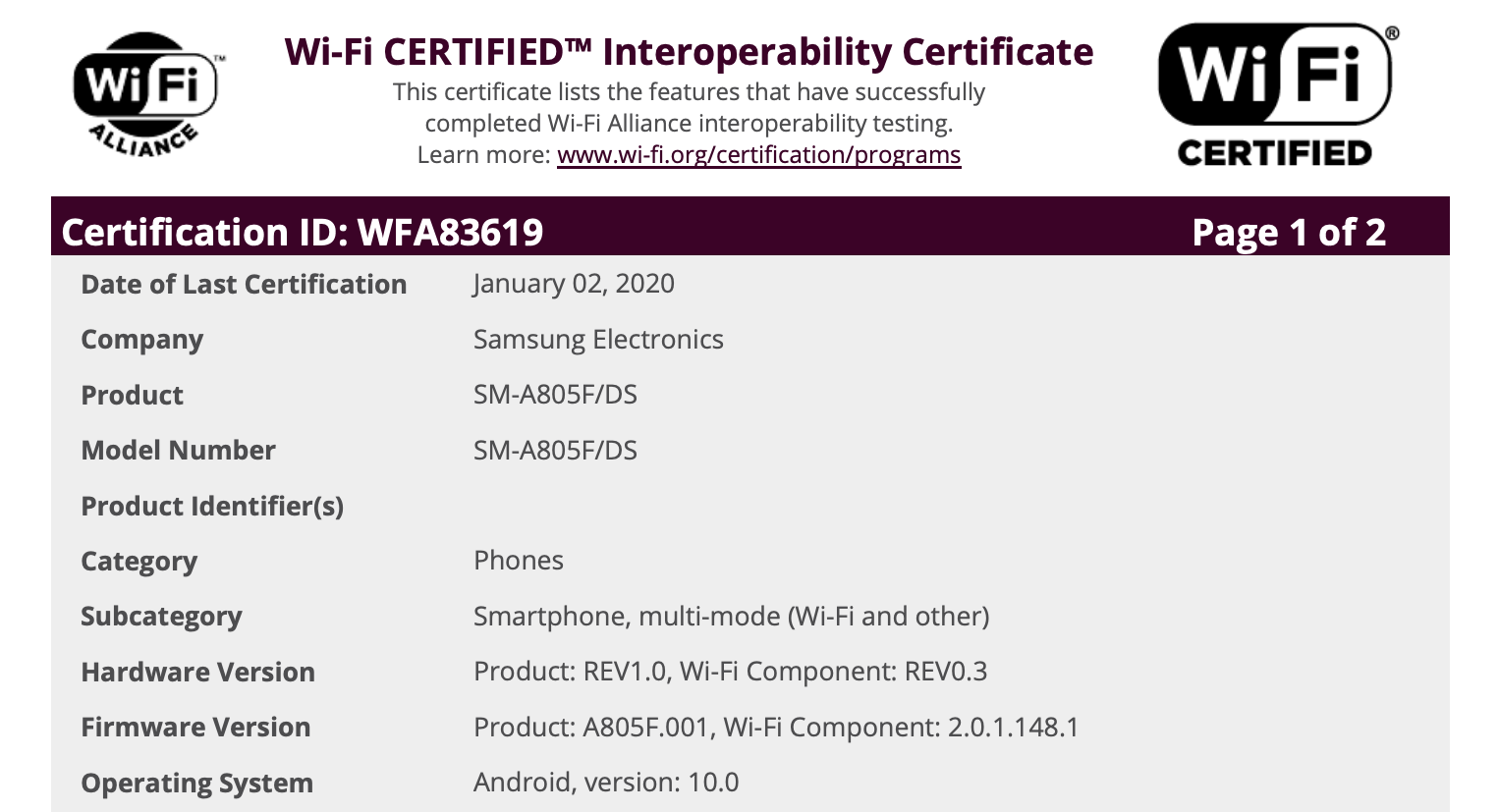 The Galaxy A80 is one of the devices that's due to receive the update. The Galaxy S9 is bound to get it as well, Samsung even included it in the One UI 2.0 beta program. Both handsets have now picked up a vital certification with Android 10 onboard.