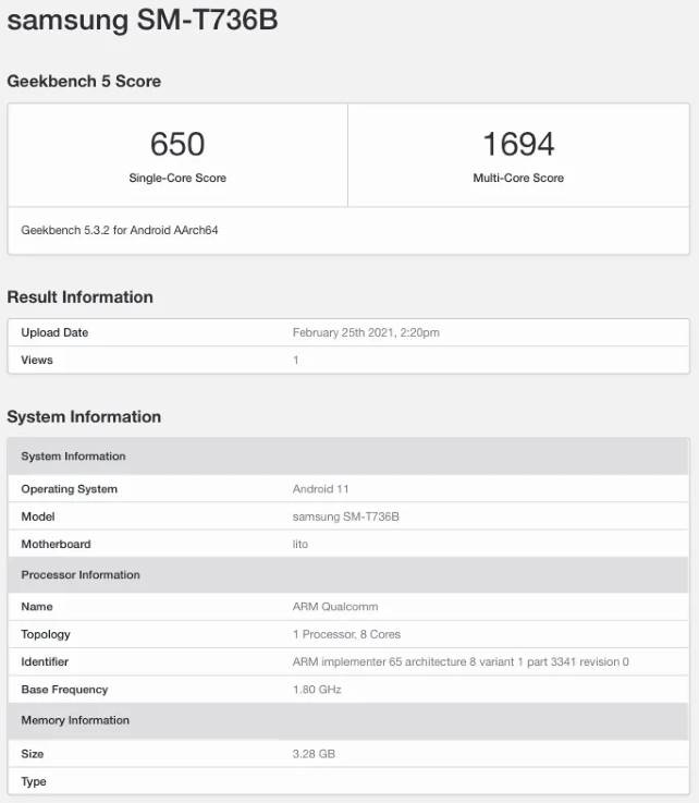 Keep in mind that it's completely possible Samsung intends to release multiple configurations of the device, beyond the expected LTE/5G split. With that said, the model that made its way to GeekBench featured only 4GB of RAM, which seems to be dancing near the bottom of what we'd expect from a mid-range Android tablet in 2021.