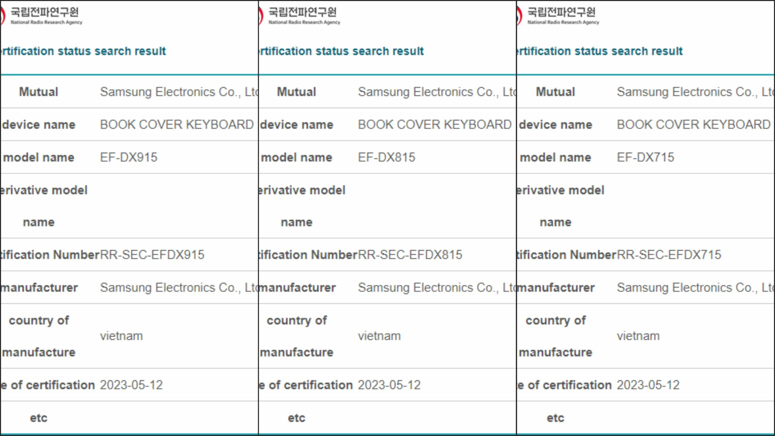 The official Book Cover Keyboards for the unannounced Galaxy Tab S9, Tab S9+, and Tab S9 Ultra have popped up online at the Radio Research Agency (via Galaxy Club), which is the equivalent of South Korea's FCC.