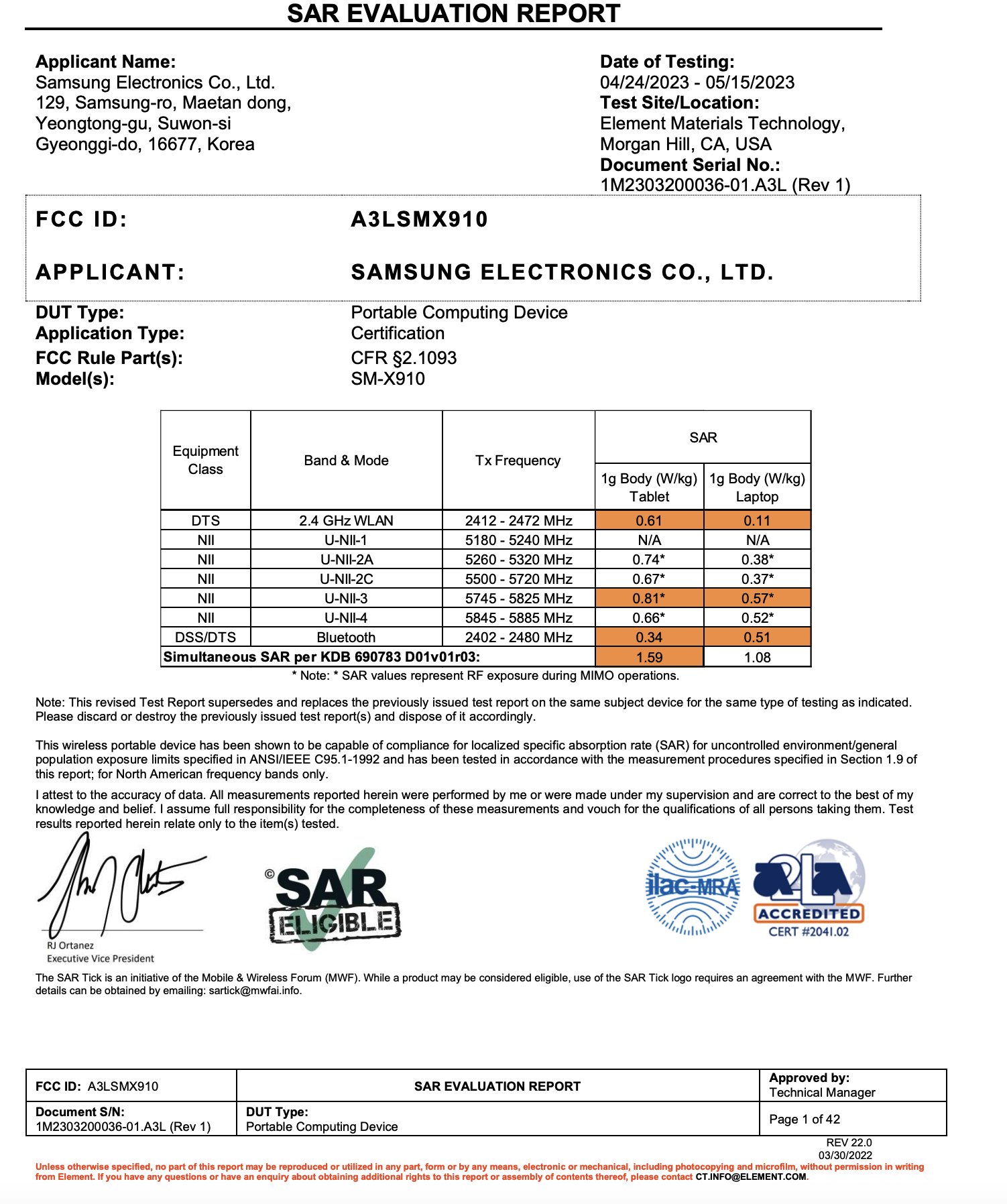 The Galaxy Tab S9 Ultra, with model number SM-X910, has passed through the FCC certification process (via @_snoopytech_). It will be the highest-end device in Samsung's upcoming tablet lineup. The certification document reveals that the device has Wi-Fi and Bluetooth, but version numbers haven't been revealed. The lineup will also likely consist of two other tablets: Galaxy Tab S9 and Galaxy Tab S9+.