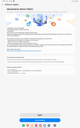 Galaxy Tab S8 users in Europe and possibly other markets should get an update notification at any moment, tap it, and start the updating process. Or they can open the Settings app on the tablet, access “Software update,” and tap “Download and install.” Users who prefer manual updates over a PC should be able to download the official firmware files from our website once they are available.