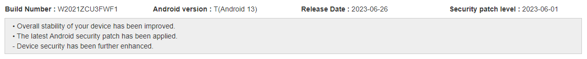 The firmware number, W2021ZCU3FWF1, suggests that the update contains more than improved security for the month of June. And the official changelog, although not very rich, does confirm that the Galaxy W21 now offers better overall stability.