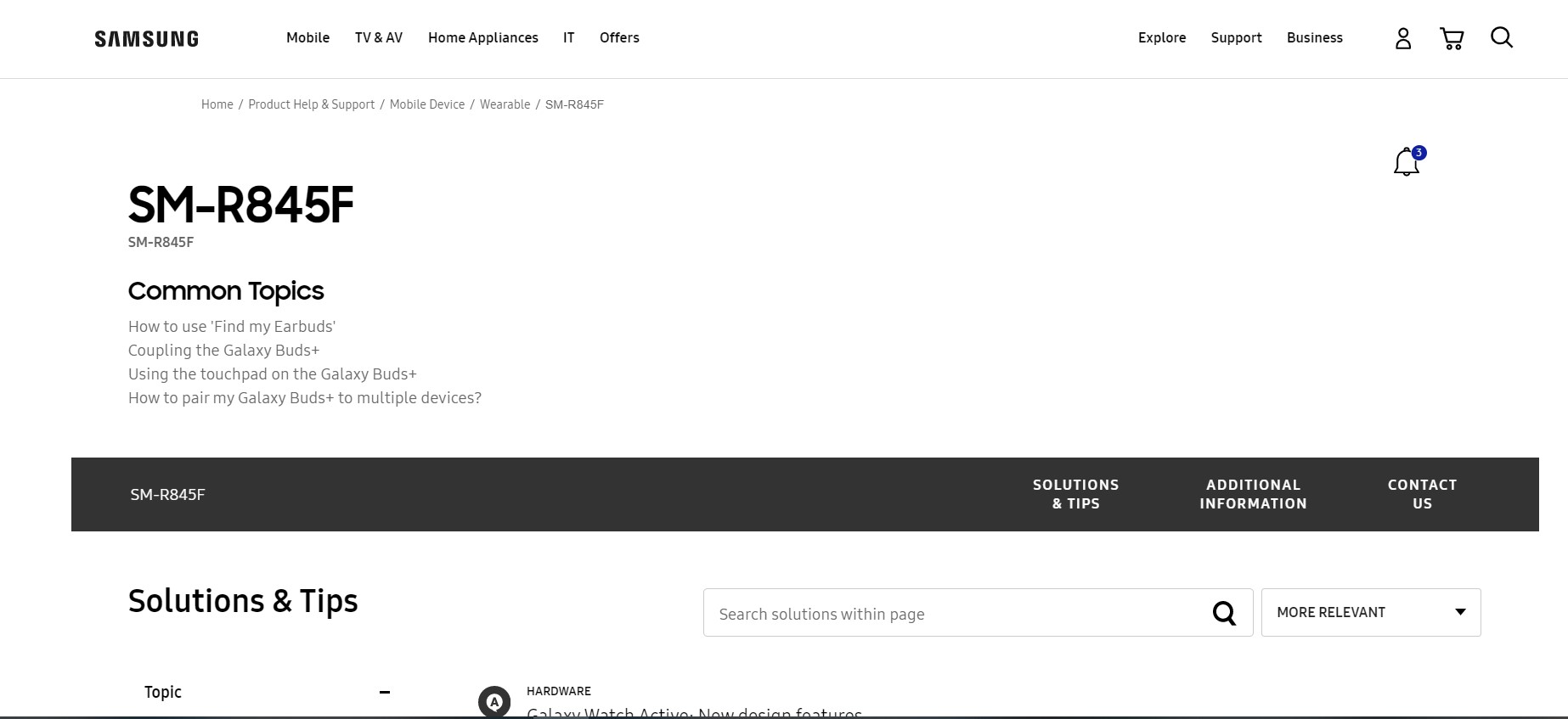 Support pages for SM-R845F and SM-R850 have been found on Samsung India's website. These model numbers correspond to 45mm and 41mm variants of the Galaxy Watch 3. The existence of these pages confirms that the 41mm and 45mm versions of the smartwatch will be launched in India. The South Korean tech giant plans to launch stainless steel and titanium variants of the Galaxy Watch 3, and there would be Wi-Fi only and Wi-Fi + LTE versions of the smartwatch as well.