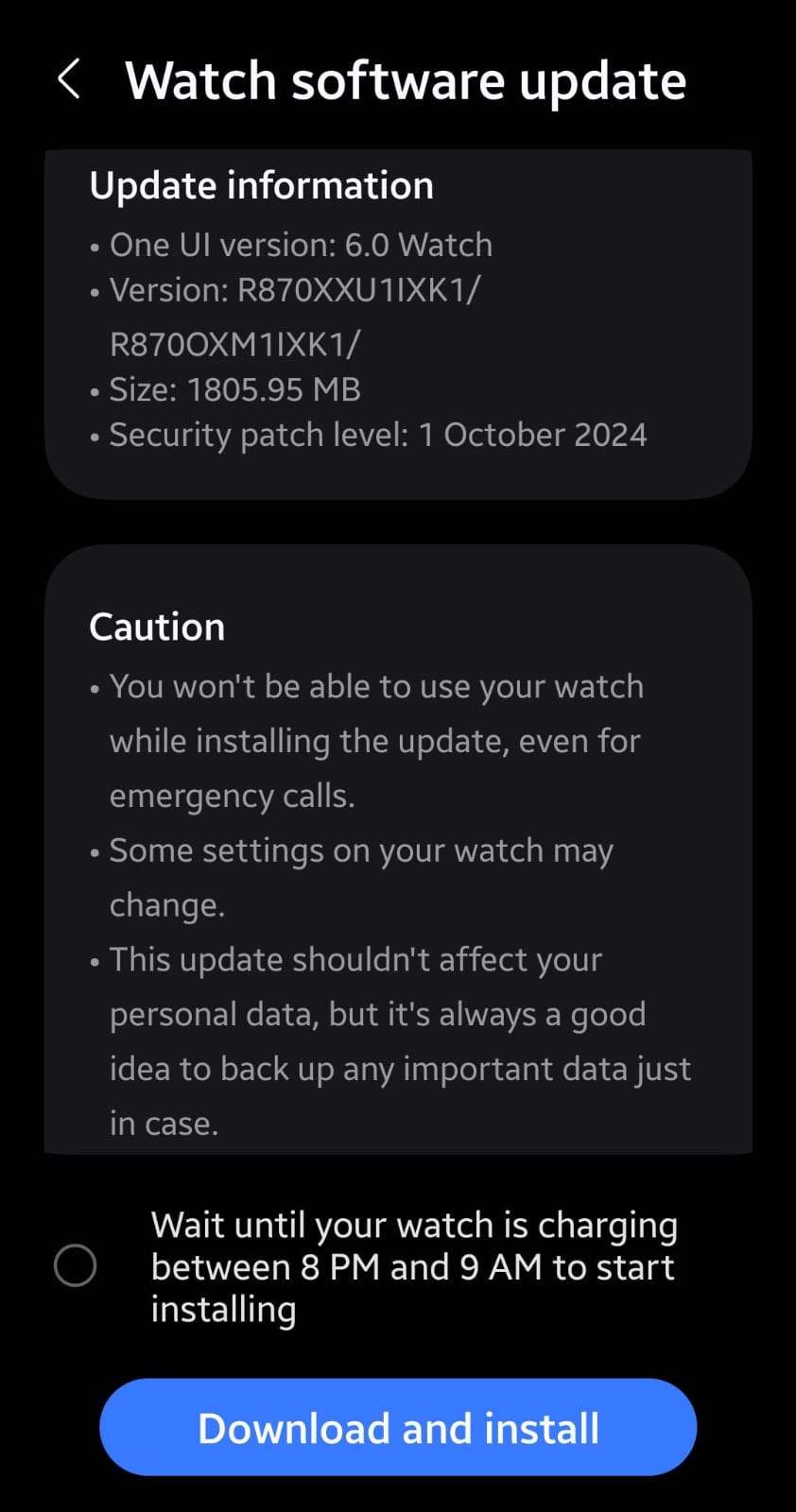 The new software update, which has a download size of around 1.8GB, brings the October 2024 security patch to the smartwatches.