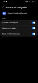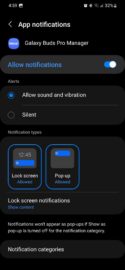 As exemplified in the screenshots below, Galaxy Buds Pro notification categories include: