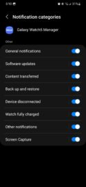 Whereas the same “notification categories” section for the Galaxy Watch 5 includes options like:
