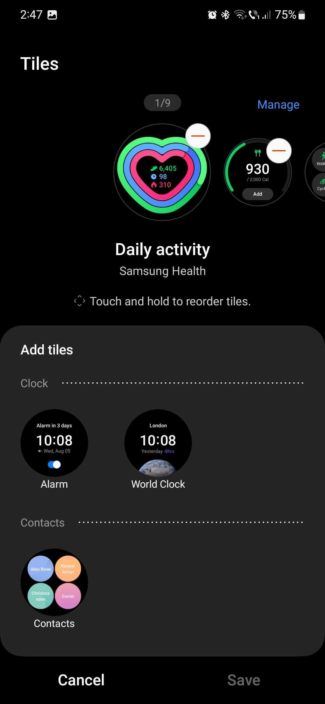 In-depth smartwatch customization can be done through the Watch Faces, App Screen, Tiles, and Quick Panel sections. Each of these section offers a wide range of customization options for watch faces, tiles, apps, and quick toggles. Numerous UI elements can be moved around and/or recolored.