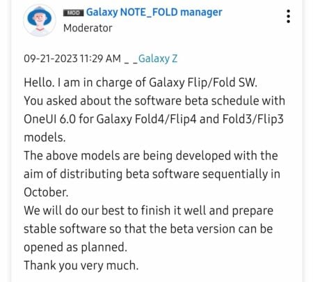 The official forum moderator of the Samsung Community forum revealed the news about the One UI 6.0 beta program for the Galaxy Z Flip 3, Galaxy Z Flip 4, Galaxy Z Fold 3, and Galaxy Z Fold 4 earlier today. This may be the first time that Samsung is releasing the One UI beta update to so many phones, including even older foldable phones. Until now, the Galaxy A34, Galaxy A54, Galaxy S21, Galaxy S22, and Galaxy S23 have already received the One UI 6.0 beta update.