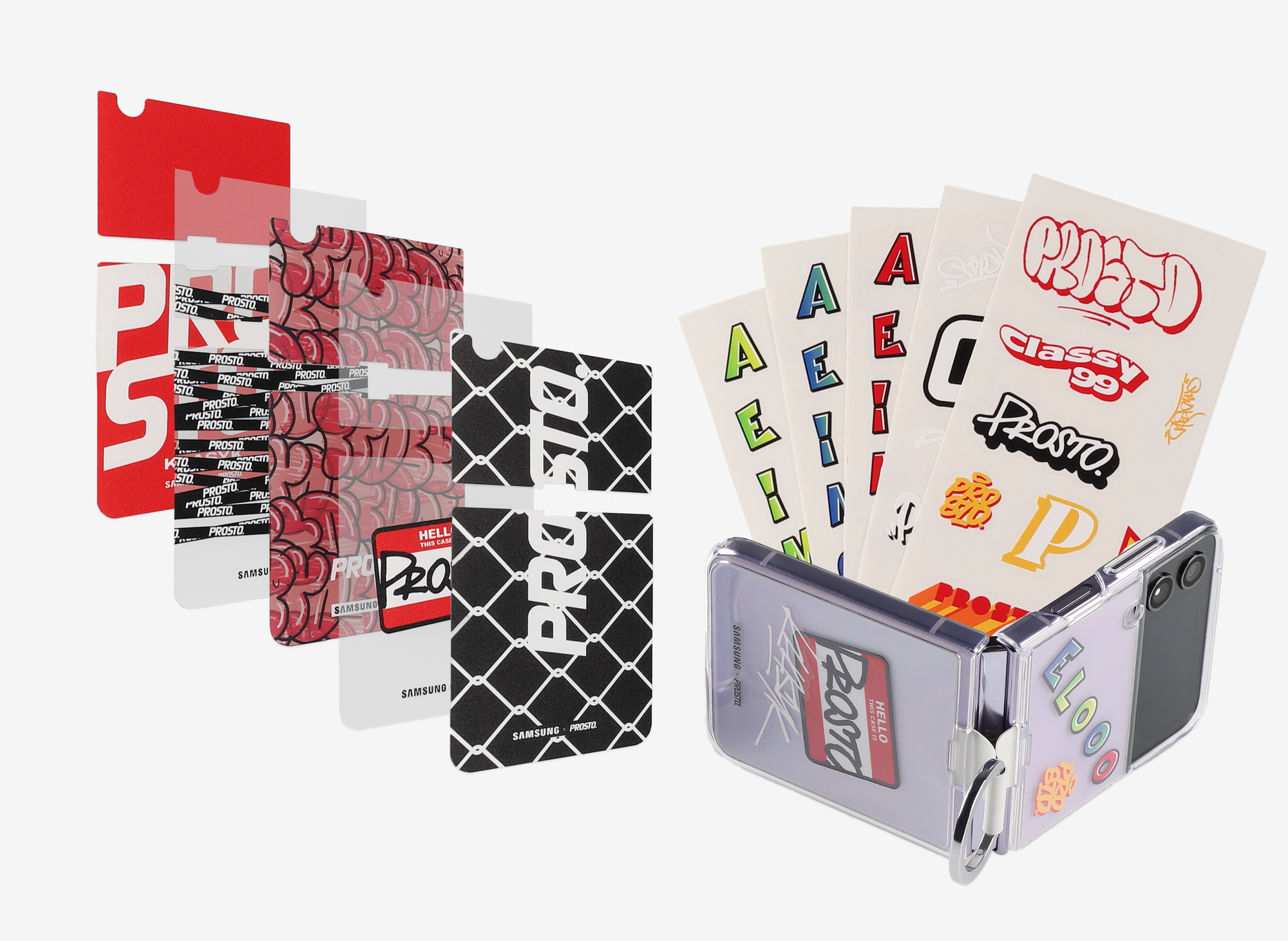 The set of Galaxy Z Flip 4 accessories consists of a transparent silicone case and a handful of limited edition inserts and stickers bearing the Prosto logo. Prosto is a clothing company inspired by the hip-hop culture and founded by Wojtek Sokół in 1999. The company designed the accessories to give Galaxy Z Flip 4 users “fun and personalized options” — said Magdalena Sielachowicz Nowakowska, head of marketing at Samsung Electronics Poland.