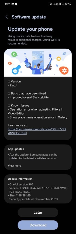 The changelog mentions that the latest update improves the software stability of One UI 6.0 on the Galaxy Z Flip 4. However, there are still a few bugs that Samsung hasn't been able to solve. Some known issues include bugs when adjusting filters in the built-in video editor and problems displaying the name of the place where the image was captured in the Gallery app.
