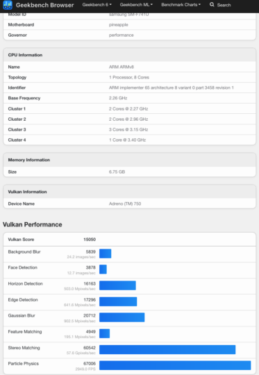 The benchmark unit had 8GB of RAM accompanying the Snapdragon chip, but based on rumors and the fact that even Samsung's new mid-range phones have 12GB of RAM, we can expect the Z Flip 6 to come in a 12GB RAM variant as well. The software version, as expected, is Android 14, and the new foldables will likely come with One UI 6.1.1.