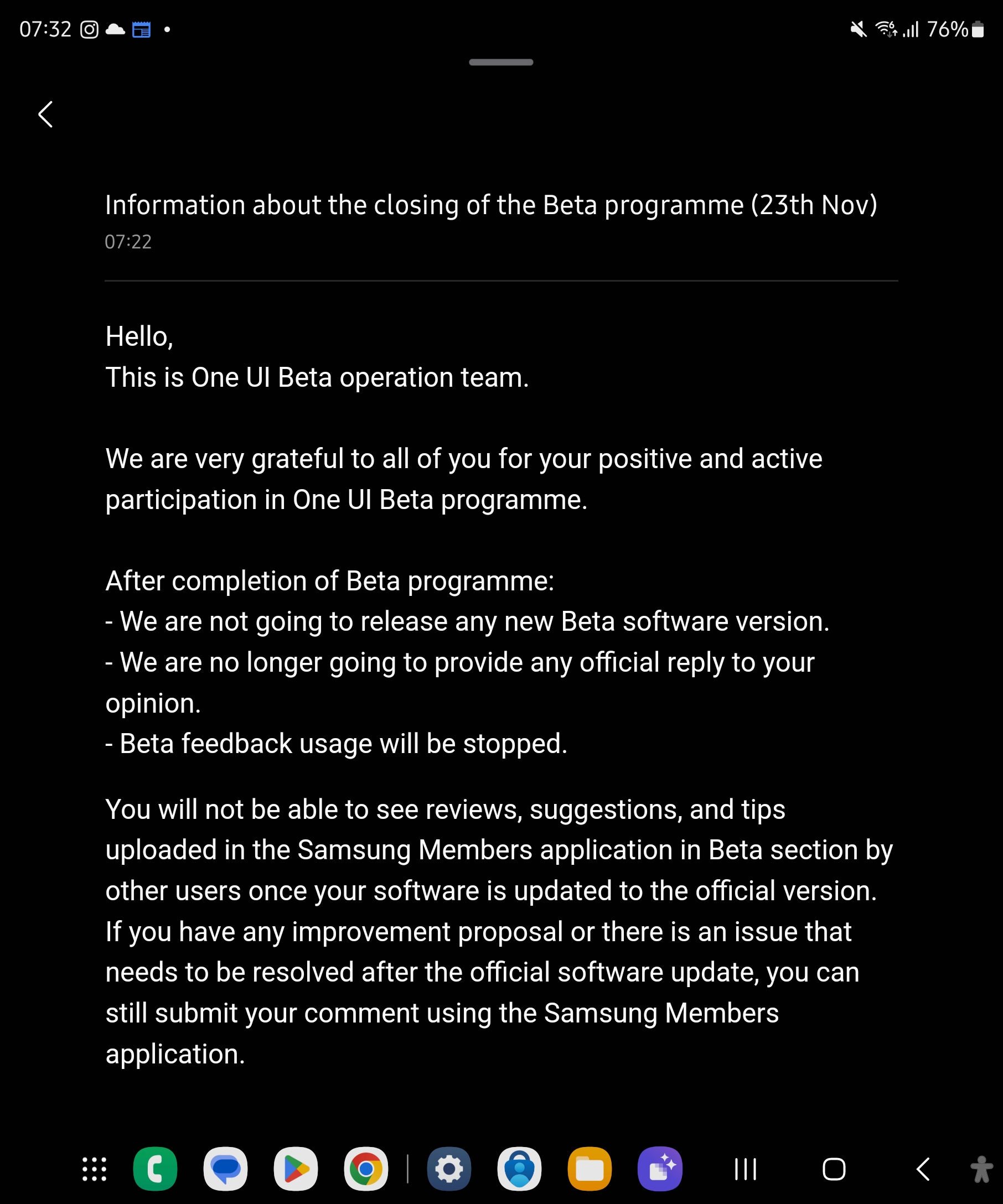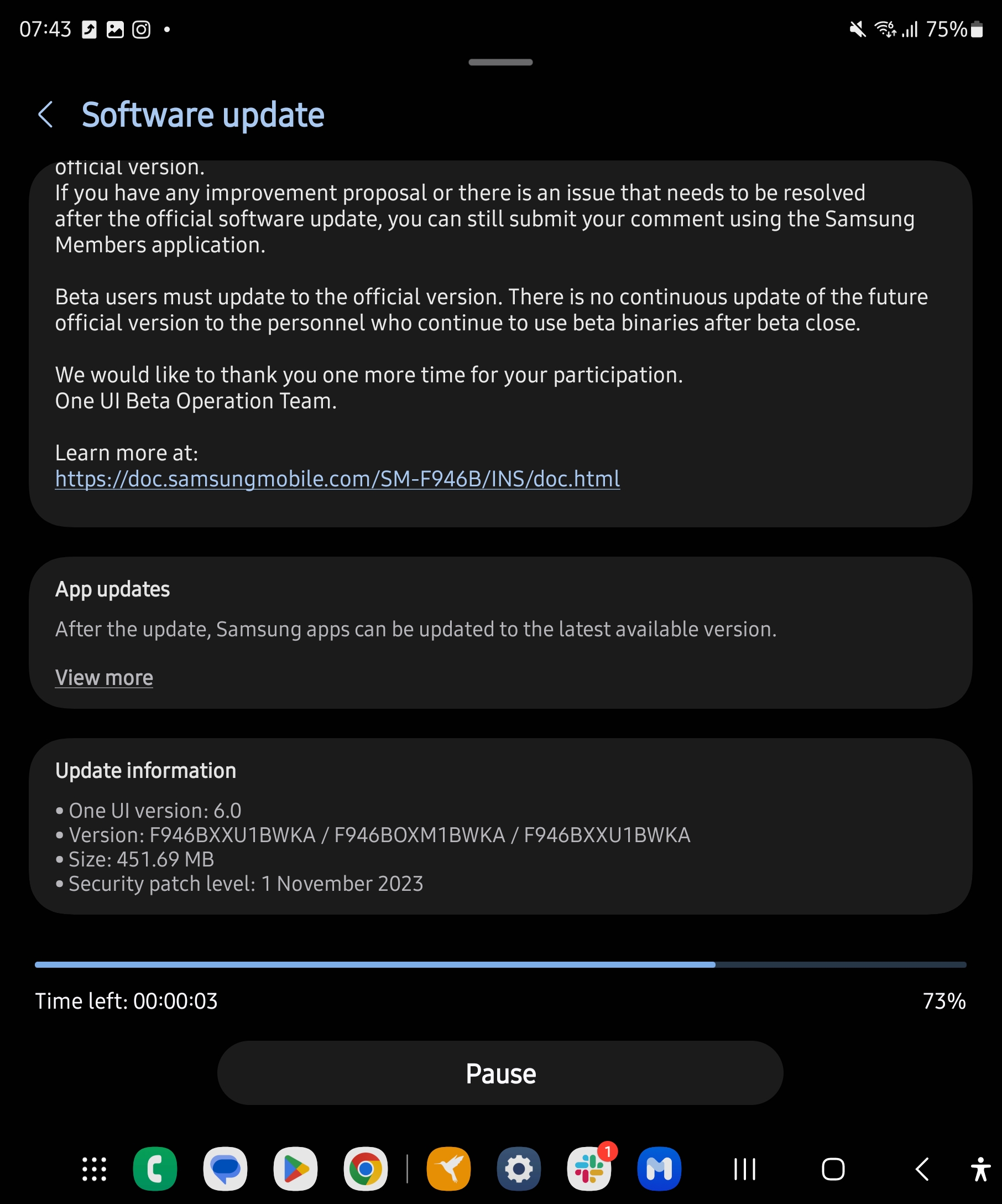 Since this update is bumping the beta firmware to the stable one, it has a considerably smaller download size of around 450 MB. Samsung doesn't say if this particular update fixes any additional bugs or make any improvements, but if you were having issues on the latest beta build, they will hopefully be addressed once the stable version has been installed.