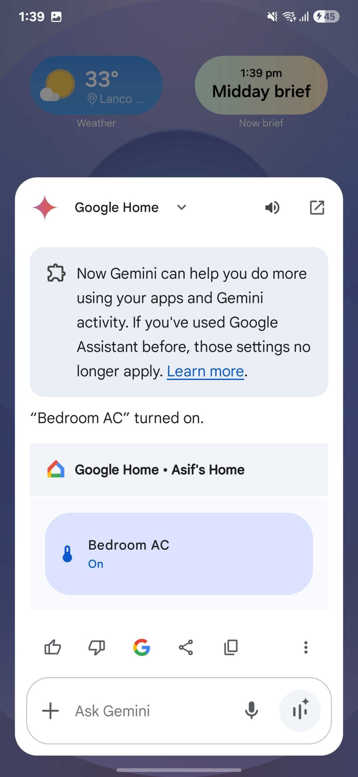You could use Gemini to control your Google Home-compatible smartphone home devices earlier, but the process was slow because it connected to Google Assistant to complete the task. Now that the Google Home extension is natively available for Gemini, Google's new AI assistant can process commands faster.