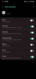 If you want to make sure you have contact syncing enabled on your Google account connected to your Galaxy phone, open the Settings app on the device, go to “Accounts and backup,” tap “Manage accounts,” select your Google account, then go to “Sync account” and make sure the “Contacts” toggle is set to the ON position.