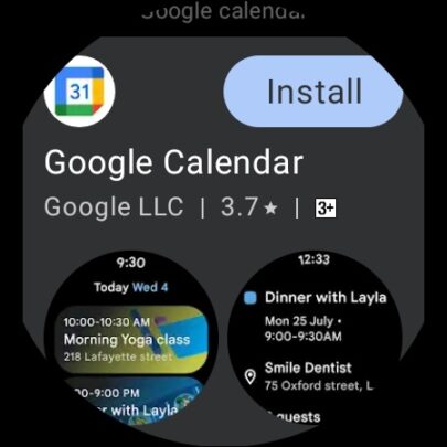 The Google Calendar app is now available for Wear OS 3 (or newer) smartwatches through the Google Play Store. The app is very simple and even lacks a month or week view. It just shows calendar entries and syncs with the default Google account that's used on a paired smartwatch. You can click on each entry to view its details, such as reminders and location, but you can't edit it.