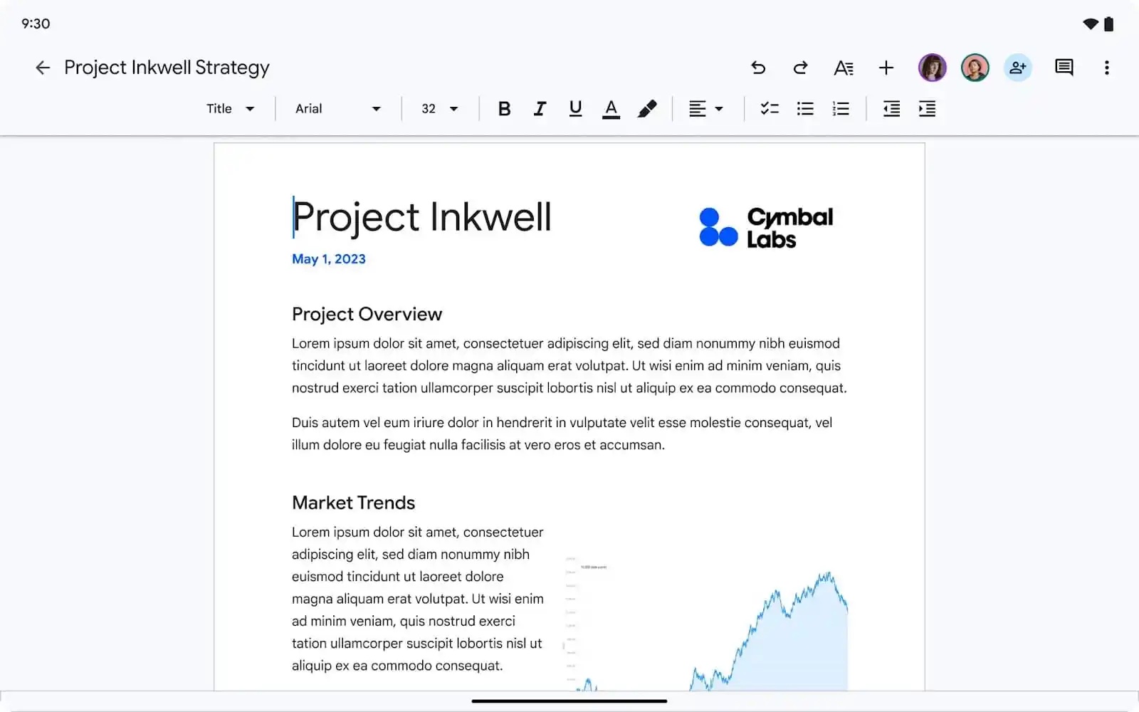 Google is updating Google Docs, Google Sheets, and Google Slides for Android tablets and foldable phones. They all are getting a modernized visual design featuring a pill-shaped layout for the text format toolbar. This toolbar now follows the Material 3 design guideline, giving users a more consistent experience across Android and the web. Other options such as redo, undo, user profiles for live collaboration, and adding more elements to the document remain at the top right side of the screen.