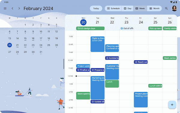 Google also showcased pane expansion, which is now possible on devices running Android 15 (via activity embedding). As you can see in the animation below, the Google Calendar app has implemented an expandable pane on the right side of the screen. Users can expand the right pane to see calendar entries in more detail.