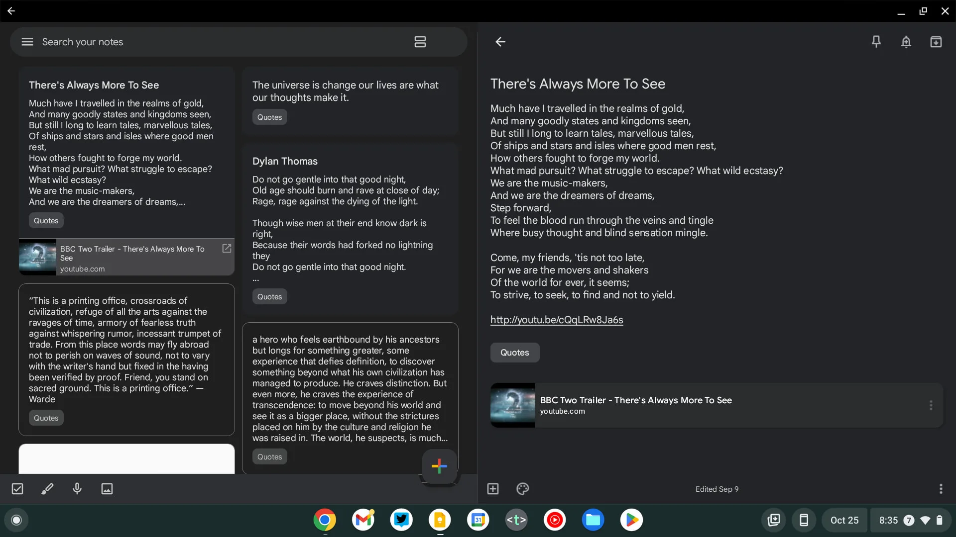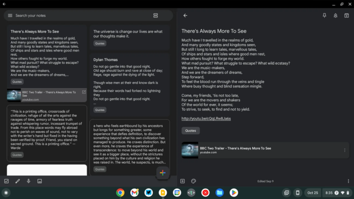 Folks at 9To5Google spotted this Google Keep dual-pane feature working on a 14-inch (1920×1080 pixels) Chromebook with version 5.22.402.02.90. It wasn't live on a pair of Samsung tablets and other devices with 11-inch screens at the moment.