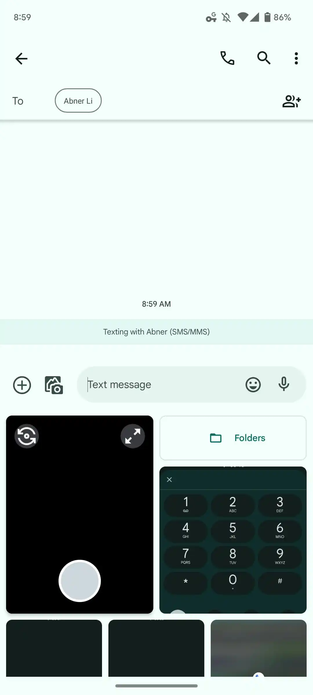 On the left, you get the same camera live preview, and next to it, you will get a ‘Folders' shortcut. The last image is shown at the bottom with a much larger preview. Swiping up this new vertical photo picker shows you fifteen images with full visibility. Previously, you were only shown six square previews of your images.