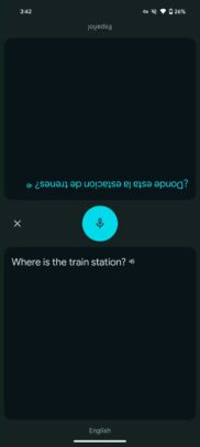 Using the chat bubble on the top of the screen, you can start the split-screen mode. In this mode, the bottom part of the screen is oriented for you, while the top half of the screen showcases text to the other user in their orientation. This new design uses various Material You design elements, including accent colors for the slider and the buttons. It also has curved corners for various parts of the UI.