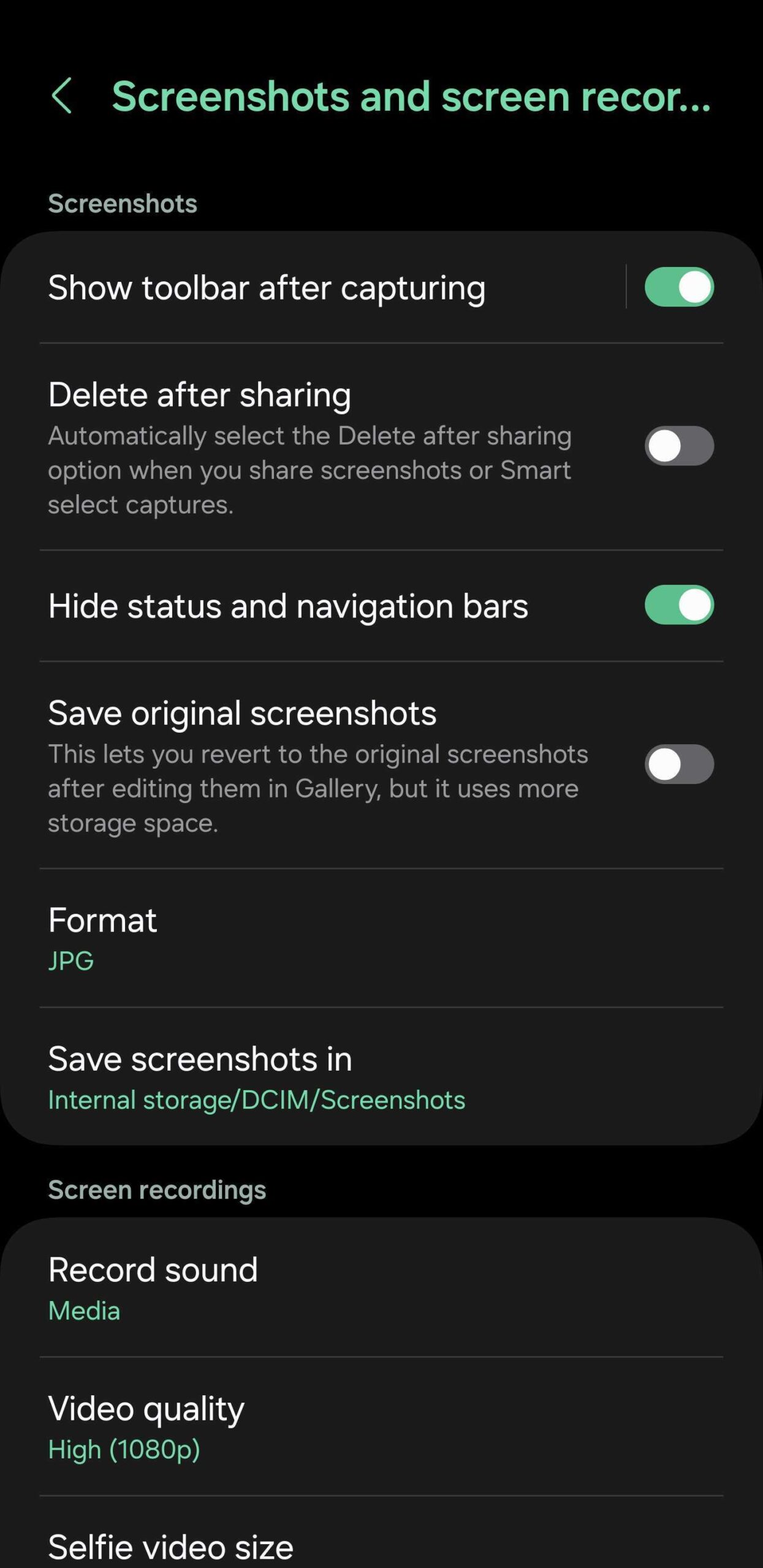 There is a way to capture cleaner screenshots with your Galaxy phone or tablet and exclude the navigation and status bar. All you need to do is open the Settings app, access “Advanced features,” go to “Screenshots and screen recordings,” and switch the “Hide status and navigation bars” toggle ON.