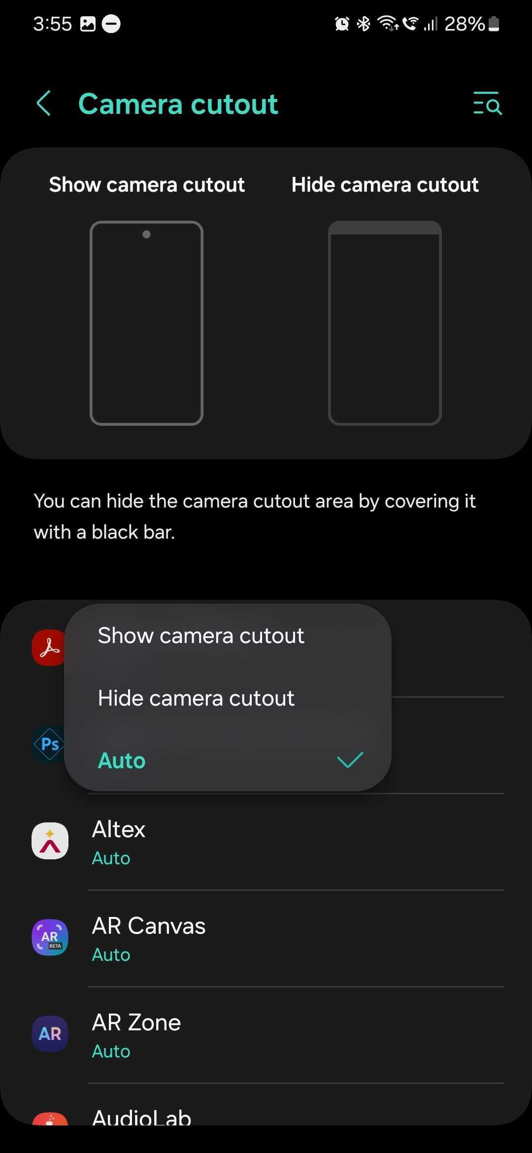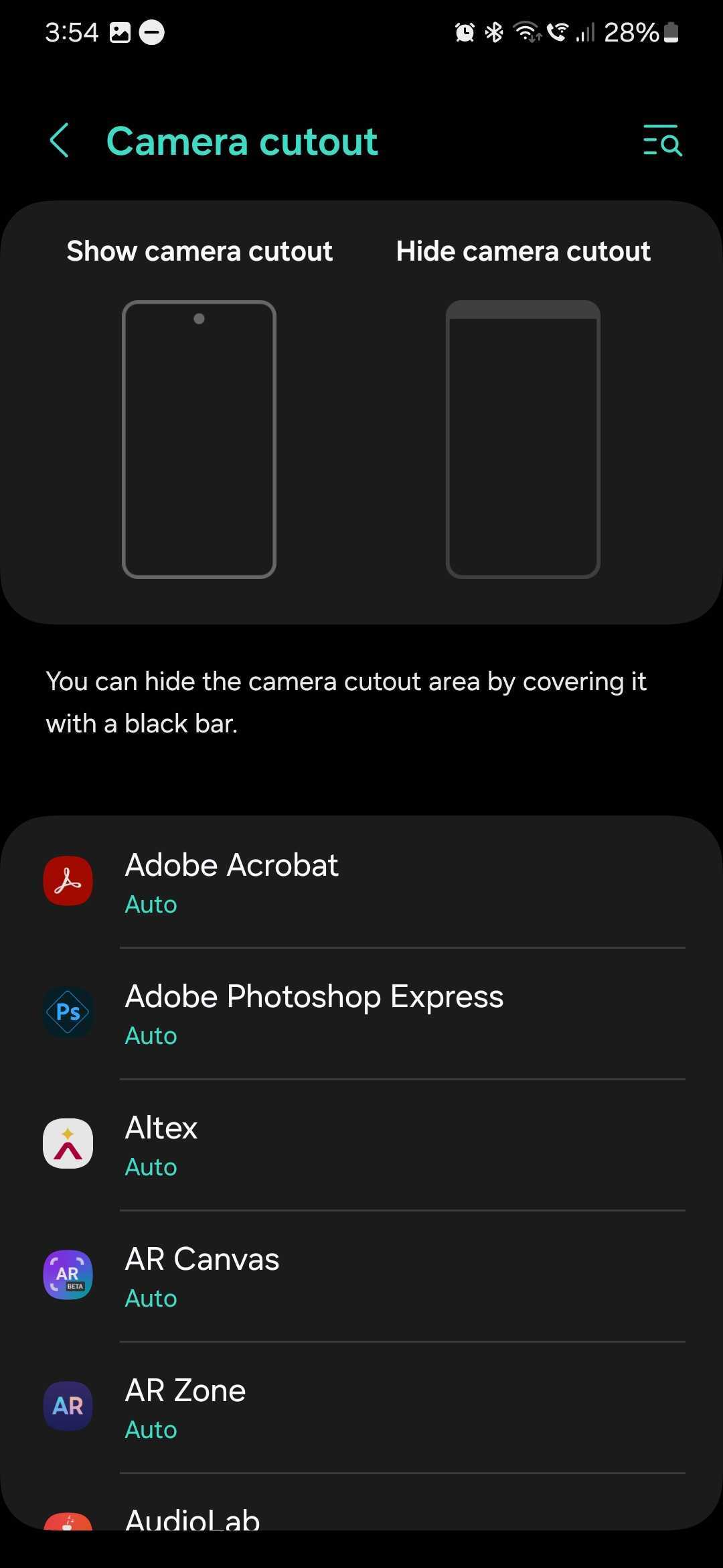 If you want to hide the camera cutout on your Galaxy phone, you can specify which apps should draw a black strip across the top of the screen.