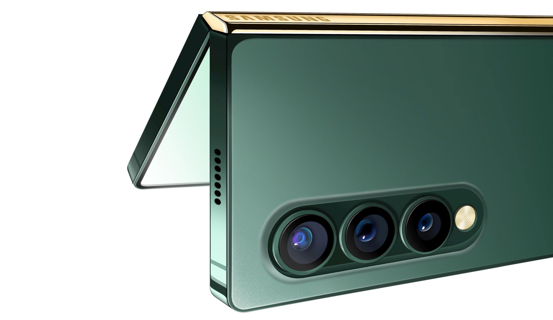 The new renders depict a vertical main camera setup with three sensors and an LED flash, same as the previous images. However, the latest concept renders give us a glimpse of what the Galaxy Z Fold 3 would look like if it had flat instead of rounded edges.