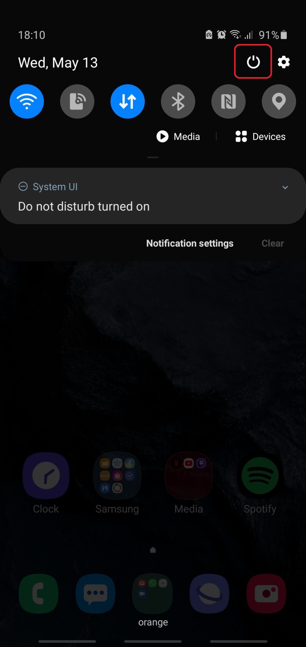 Turn off the Galaxy Note 10 from Quick Settings