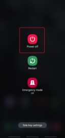 - After holding the volume down and side buttons pressed for a couple of seconds, the power menu will appear