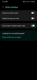 If you want to integrate Split Screen into your routine and use this convenient two-finger gesture, open the Settings app on your phone or tablet, go to “Advanced features,” and tap “Multi window.” Then, tap “Swipe for split screen” and set the toggle switch ON.