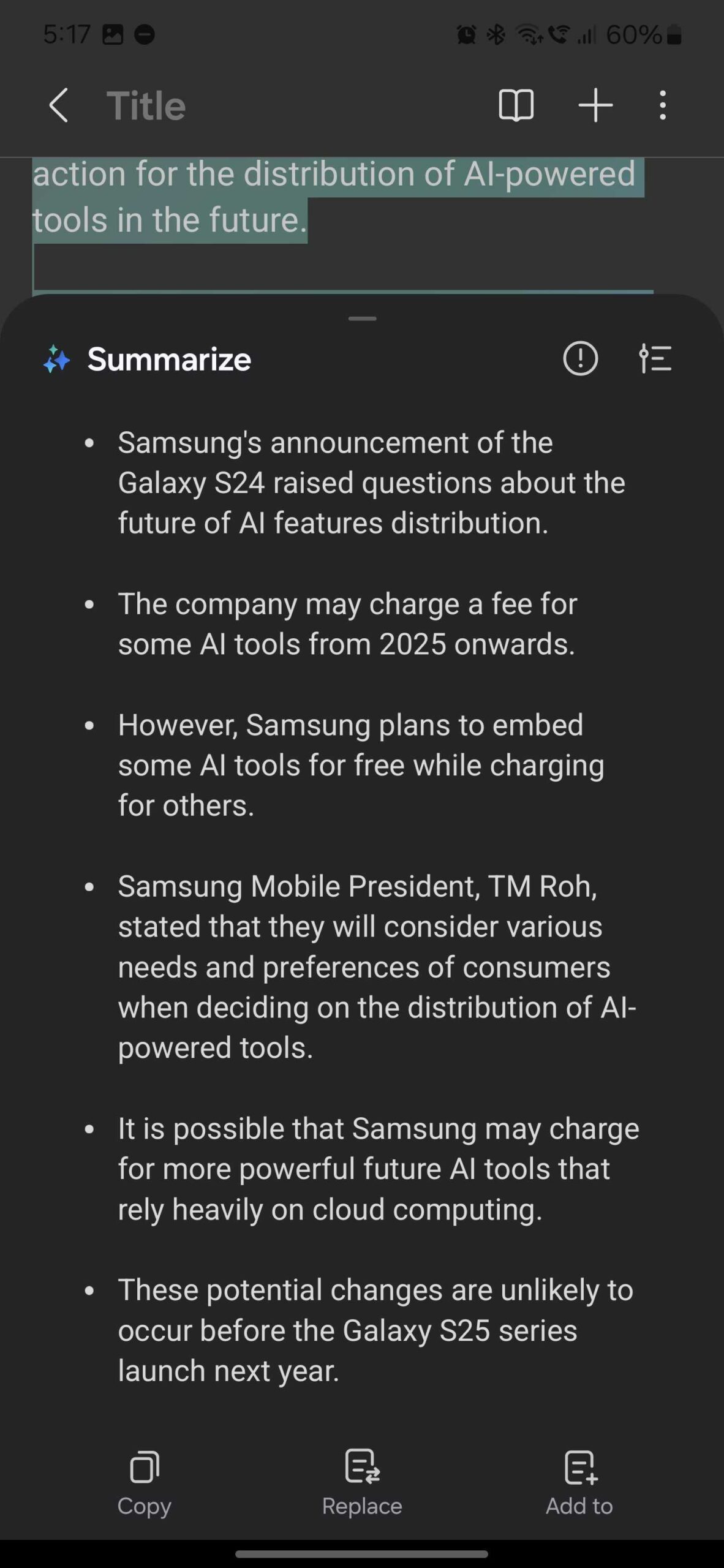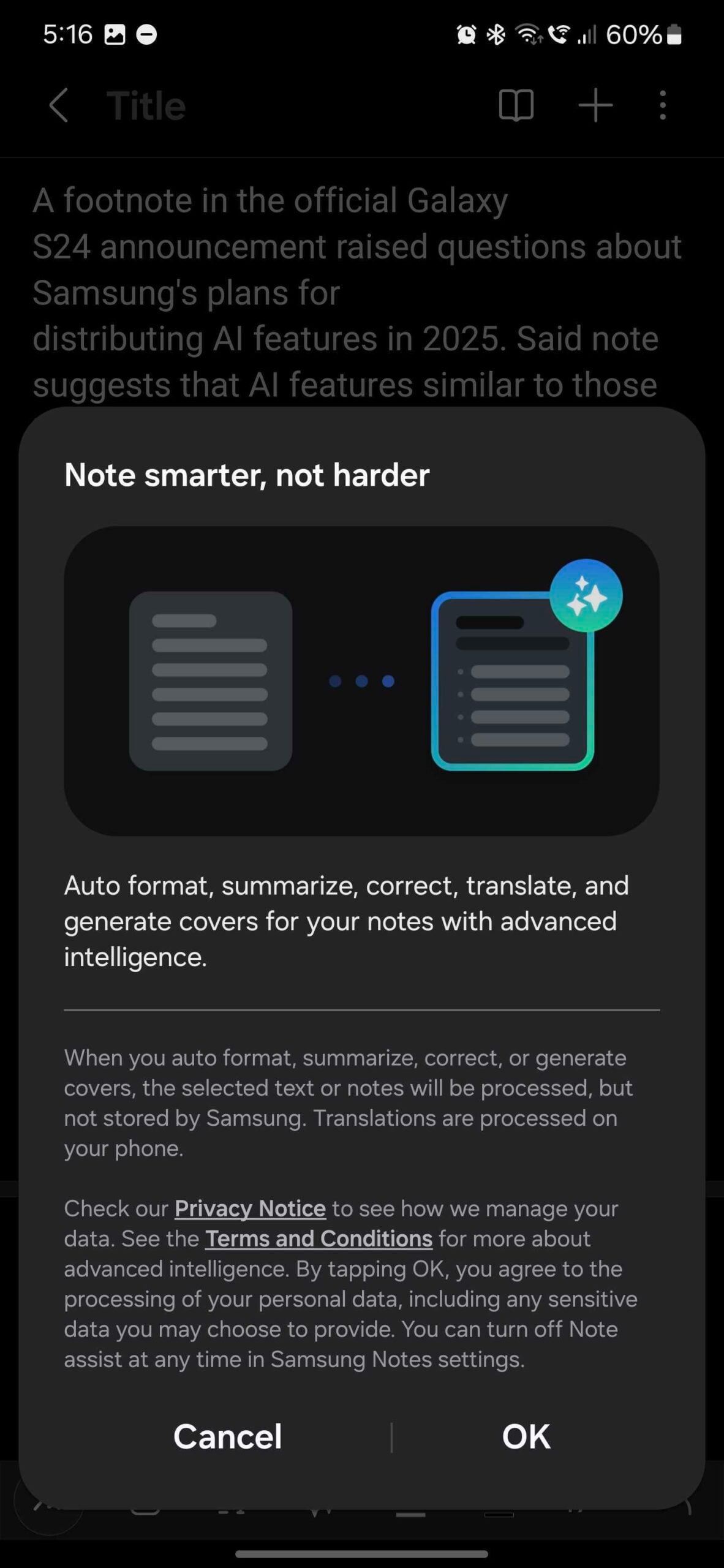 For now, these AI-powered features are available for Samsung Notes exclusively in One UI 6.1 for the Galaxy S24 series. They may or may not become available to older Samsung phones through a future firmware update.