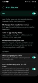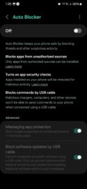 In addition, once Auto Blocker is enabled, users can choose to prevent their Galaxy devices from receiving firmware updates via USB. In addition, they can block messages with image attachments suspected of containing malware. These two extra options can be turned ON or OFF individually.