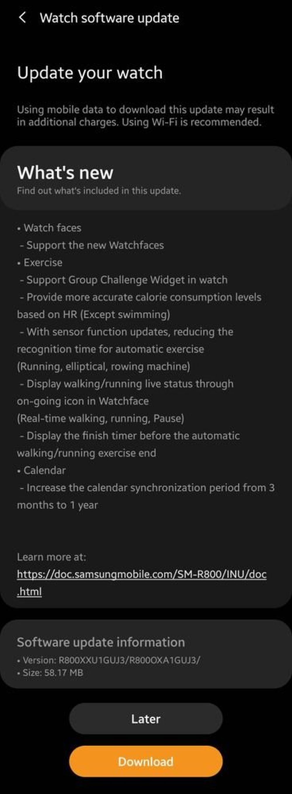 Aside from the new watch faces that were borrowed from the Galaxy Watch 4 series, the latest firmware update for the Galaxy Watch and Watch Active adds support for the Group Challenge widget, and should now provide more accurate data on calorie consumption based on the user's heart rate.