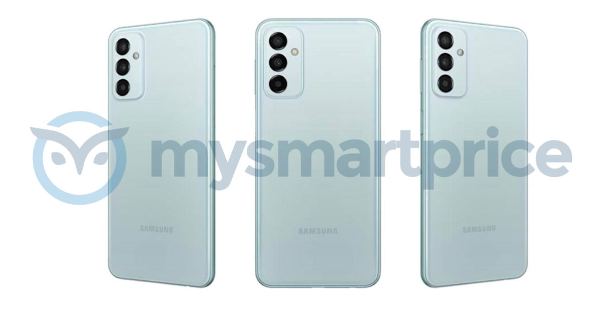 As you can see in the attached renders below, there are three Galaxy M23 colourways. At the back, there are just three vertically aligned camera sensors, a departure from the Galaxy M22's square-shaped array. Samsung likely cut down on one camera sensor to keep its price competitive. The renders also showcase a side-mounted fingerprint sensor and a waterdrop-style notch for the selfie camera.
