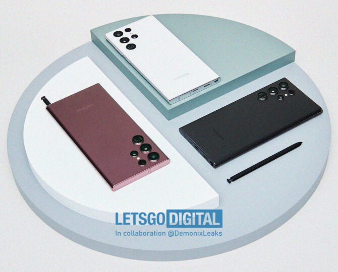 LetsGoDigital and @DemonixLeaks have leaked four new images of the Galaxy S22 Ultra. One of these images shows the smartphone in three color variants: black, bronze, and white. The front and rear portions of the smartphone can be clearly seen in other images. The bundled S Pen and its dedicated slot are also visible in the pictures.
